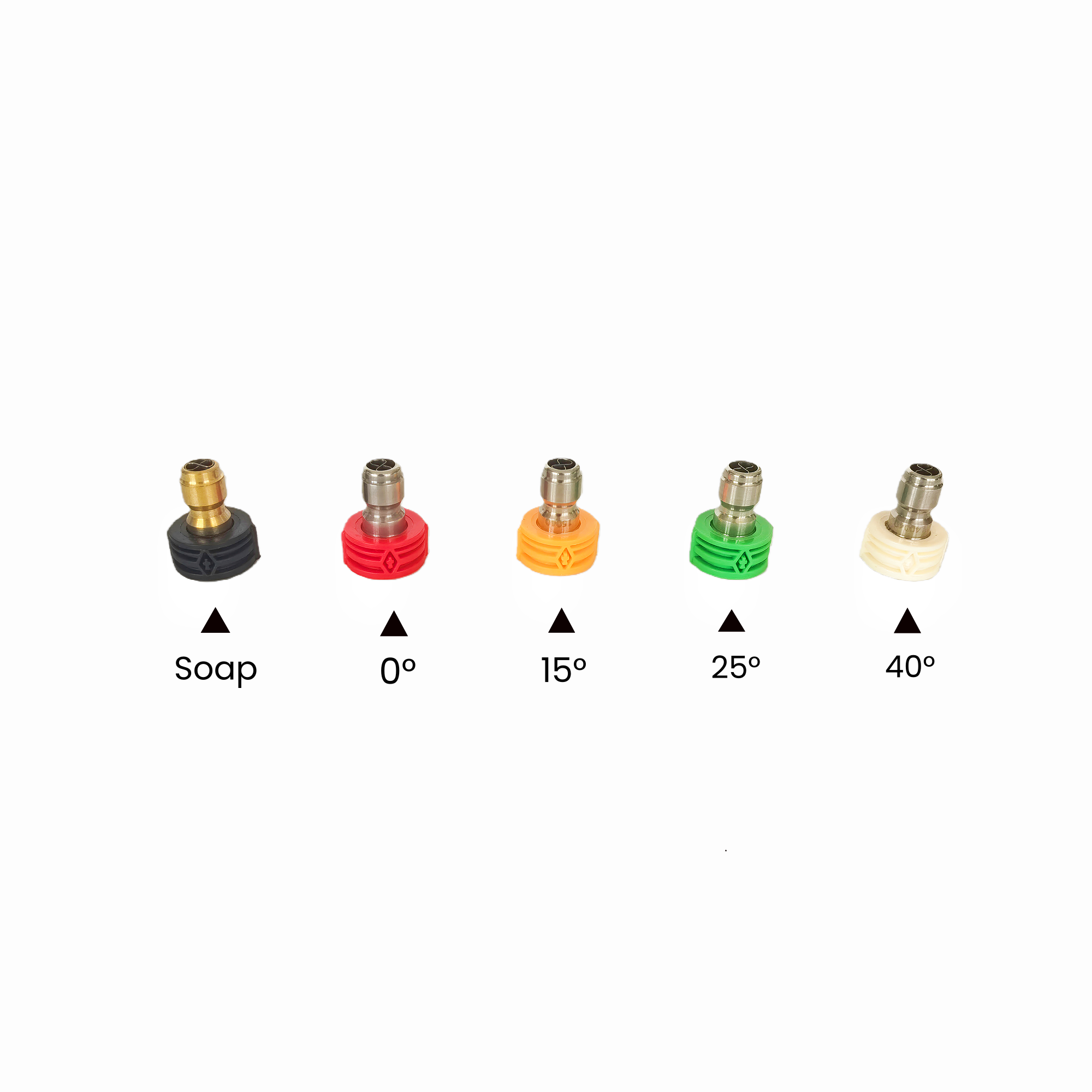 0°, 15°, 25°, 40°, soap tip