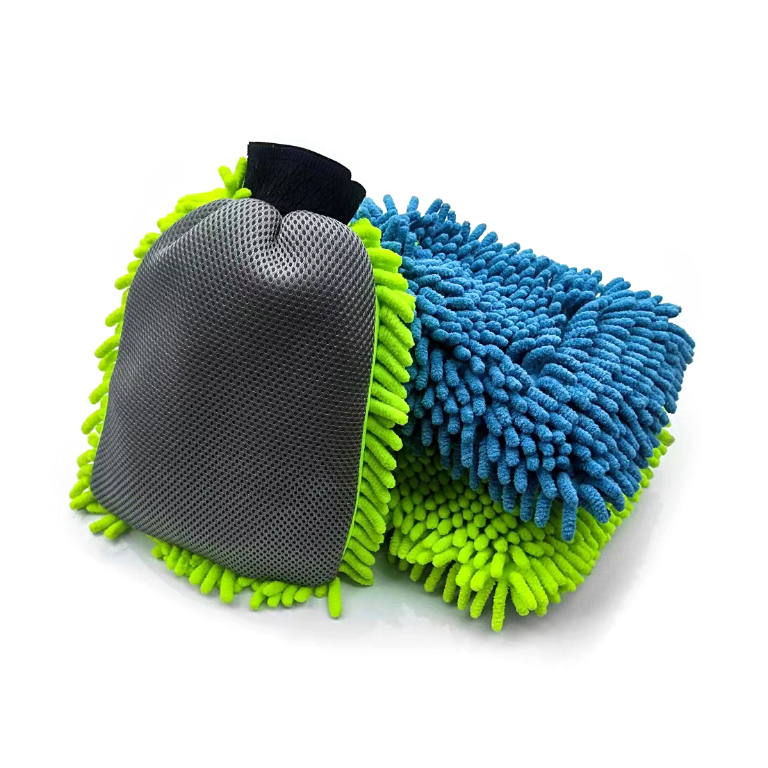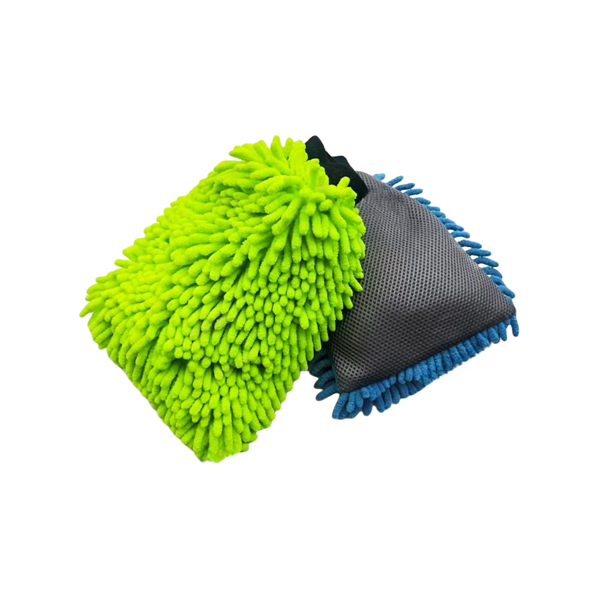 * This two -in -one cleaning glove one side is Chenille, and the other side is Mesh.
