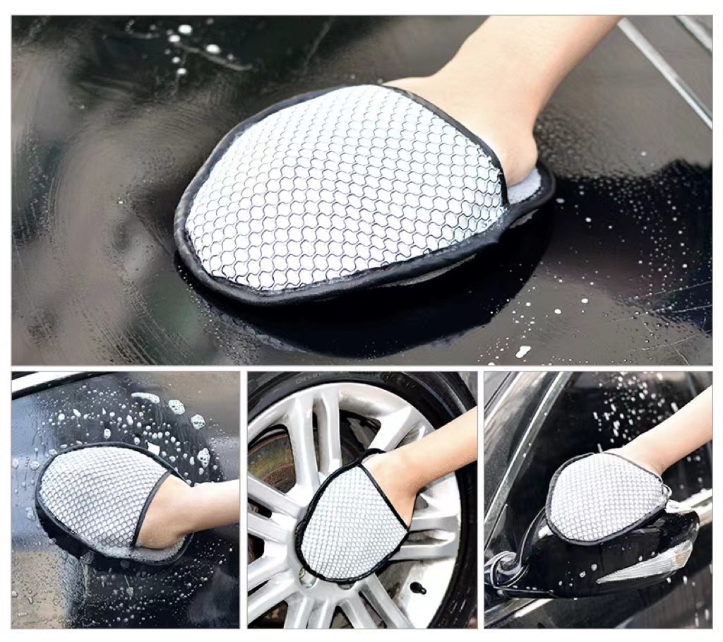 * The surface of the mesh cloth stirs the vehicle to release dirt particles and gather them between the deep chains. The loose dirt will gather in the gloves instead of being painted on the paint.