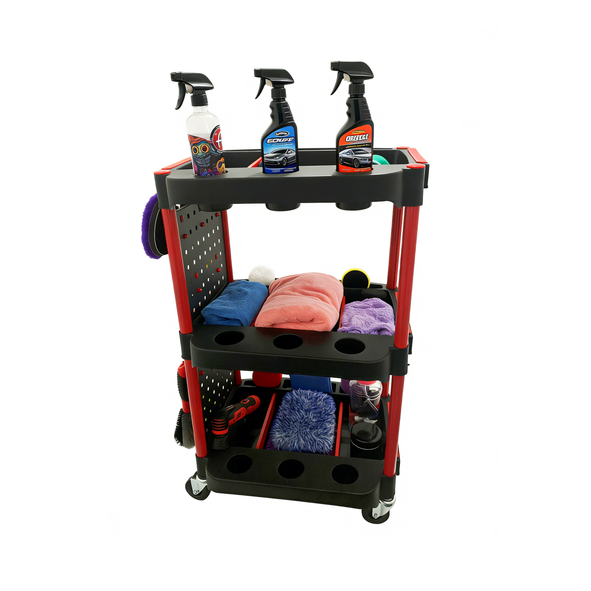 * [MOBILE YOUR TOOLS & SUPPLIES] Keep mechanic tools, car detailing supplies and cleaning supplies close at hand while carting around with the Selected Auto 3-Tier Rolling Cart Organizer.